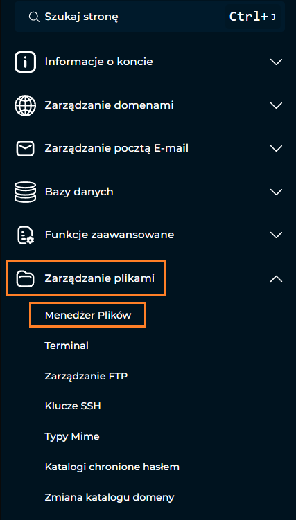 Z menu wybierz ’Zarządzanie plikami’ > „Menedżer plików’.