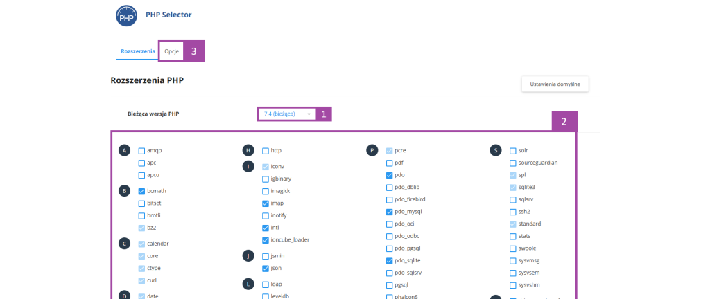 3 – ta opcja przełączy nam widok na ustawienia dodatkowych zmiennych PHP